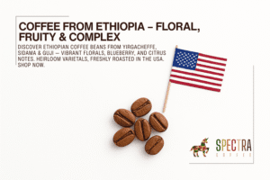 Ethiopia is the birthplace of coffee, and its beans remain among the most complex and sought-after in the specialty coffee world. Grown across legendary regions like Yirgacheffe, Sidama, and Guji, Ethiopian coffee is celebrated for its extraordinary diversity of flavor — from vibrant jasmine florals and bergamot to ripe blueberry, peach, and lemon zest. Both washed and natural processing methods thrive here, each revealing a different dimension of the bean’s character. With ancient heirloom varietals grown at high altitudes on smallholder farms, Ethiopian coffee is truly in a class of its own. Explore our Ethiopian selection at Spectra Coffee.