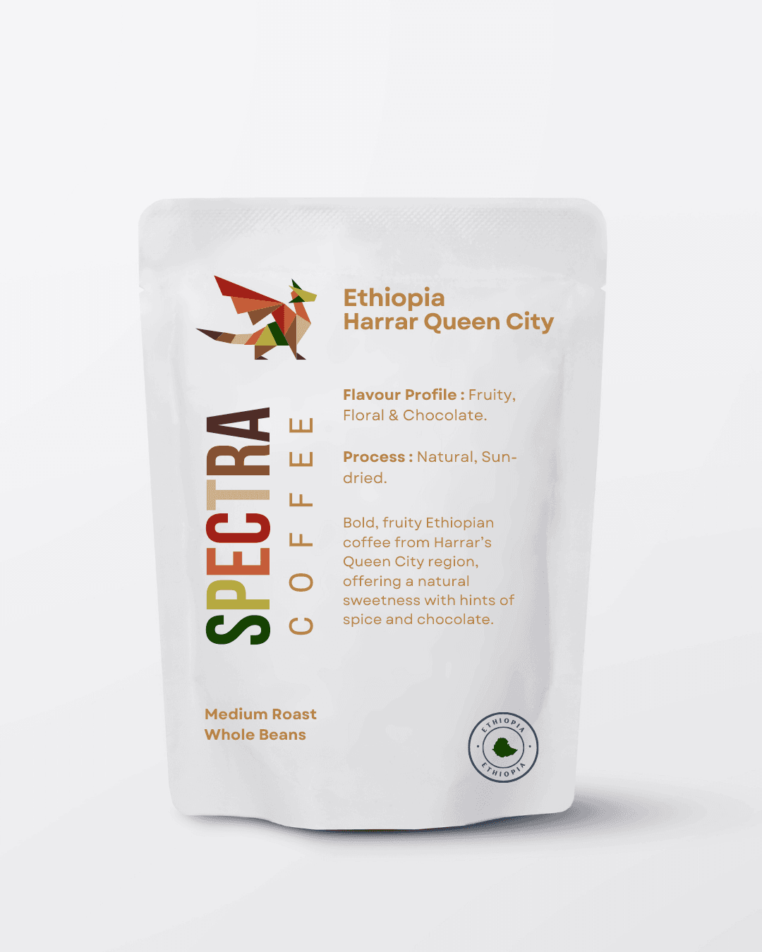 The Ethiopia Harrar Queen City Coffee utilizes a natural or “dry” processing method. In this method, the coffee cherries are handpicked and sun-dried with the fruit still on the bean, allowing them to absorb the natural sugars. This technique enhances the fruity, wine-like characteristics for which Harrar coffees are known. Recent innovations have improved consistency and quality, with better sorting and drying techniques ensuring that only the ripest cherries make it to the final cup.