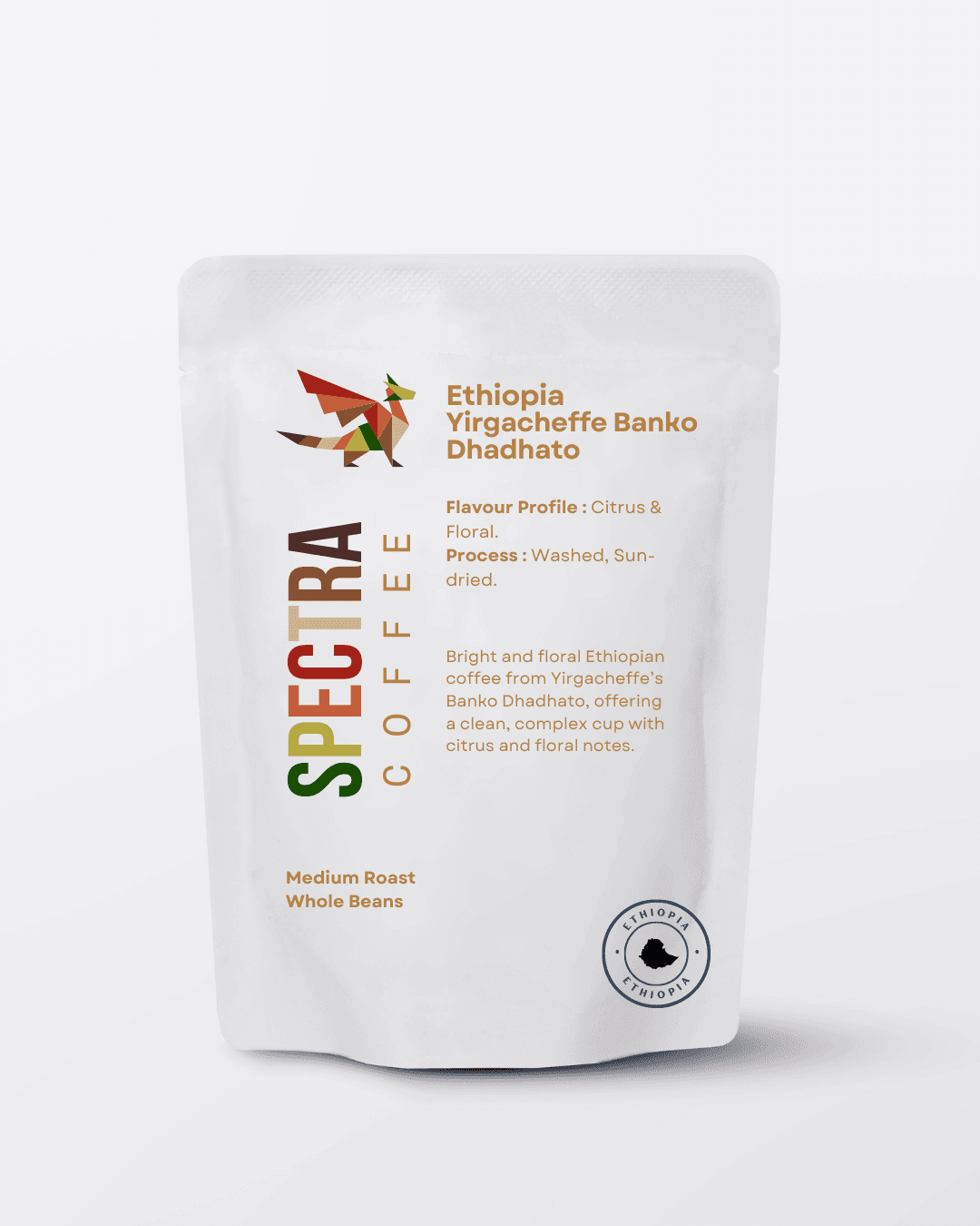 Ethiopia’s Yirgacheffe region is renowned for producing some of the world’s most sought-after specialty coffees. The Banko Dhadhato cooperative, located within Yirgacheffe, plays a key role in this legacy, cultivating beans at high elevations between 1,800 to 2,200 meters. The area’s lush environment, consistent rainfall, and rich volcanic soil create optimal conditions for growing coffee. Yirgacheffe is particularly known for its smallholder farms, where farmers employ traditional, organic farming techniques that respect the land’s biodiversity. The cooperative’s commitment to quality ensures that each batch of coffee captures the unique terroir, resulting in a clean, bright cup.
