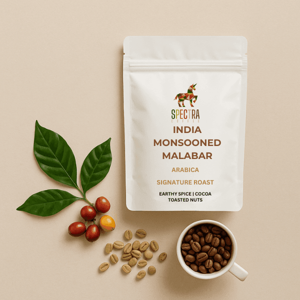 The monsooning process remains labour-intensive and rooted in tradition, reflecting India’s heritage in coffee. At Spectra Coffee, we roast weekly in the United States to maintain the authenticity of this bold origin while delivering maximum freshness.